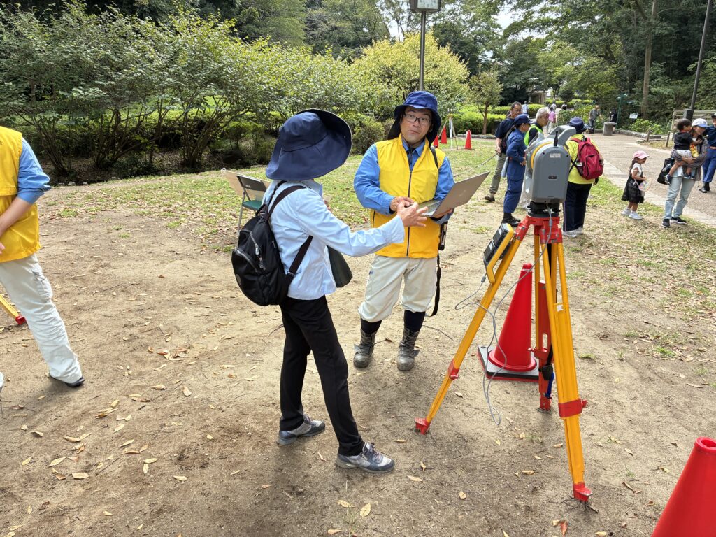 去年来れなかった起震車が登場し、AEDや水消火器、煙体験等があり、その他にも地層に関するブースや測量体験、応急給水体験もあり非常に盛り上がりました!