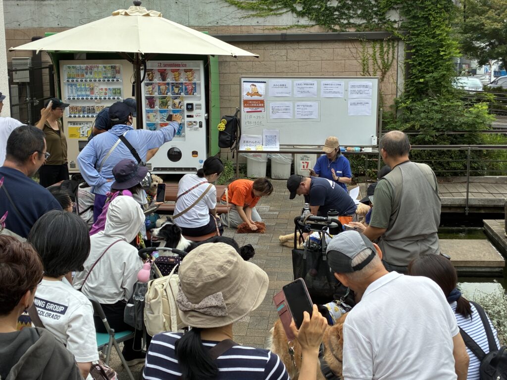 犬の心肺蘇生講習会もありワンちゃん連れの人たちが足を止めて聞いてくれていました!