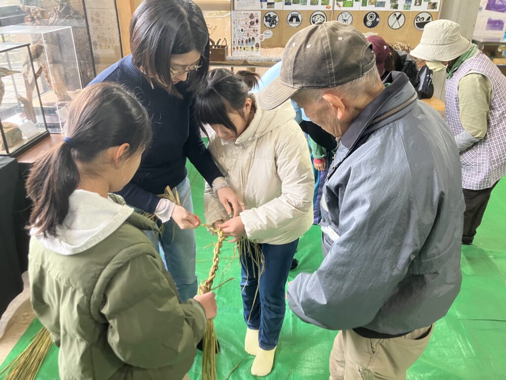 今回は、田んぼの1年を学んできた最後の会ということで、育ててきた稲の藁を編んで作るお正月飾りづくりを行いました。自分で藁から作るお正月飾りは、参加された皆さんそれぞれの味がでていて、とても素敵な作品が出来上がりました✨何人かで協力して、息を合わせることできれいに仕上がるしめ縄ですので、家族、お友達との絆も深まったのではないでしょうか⁈
