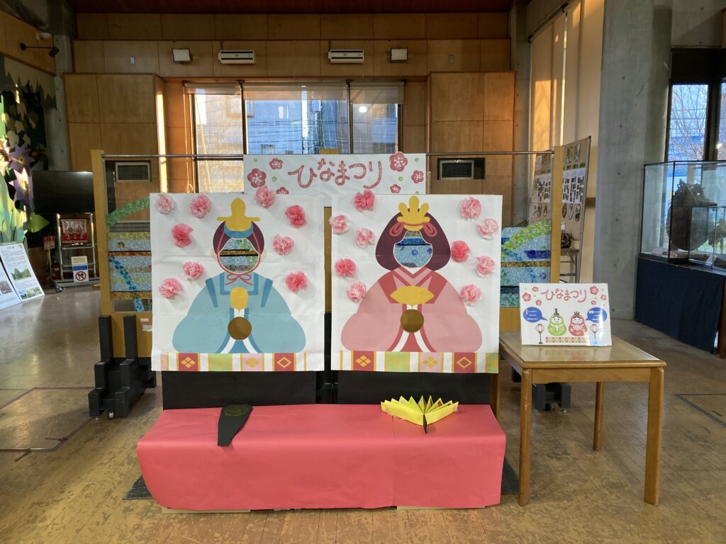 パークセンター内にひな祭りにちなんだお内裏さまとお雛さまの記念撮影スポットを設けました!