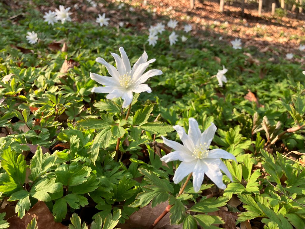 2026.02.18 【スタッフブログ】2/18キクザキイチゲが見ごろです 白くて可愛らしいお花、キクザキイチゲが見ごろを迎えています。見晴台と展望デッキの間、坂道の途中に小さく咲いています。いよいよ2月も下旬に差し掛かり、園内には春の訪れを感じさせてくれる花たちが咲き始めています。