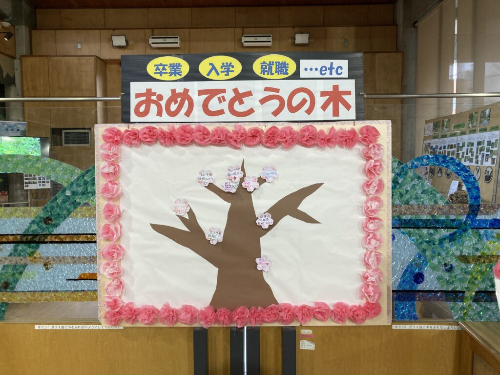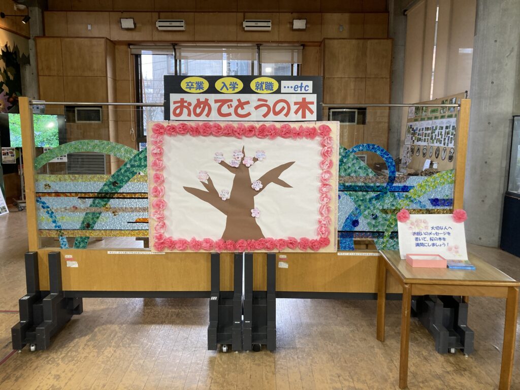 パークセンター内に「おめでとうの木」と題してメッセージボードを設置いたしました。