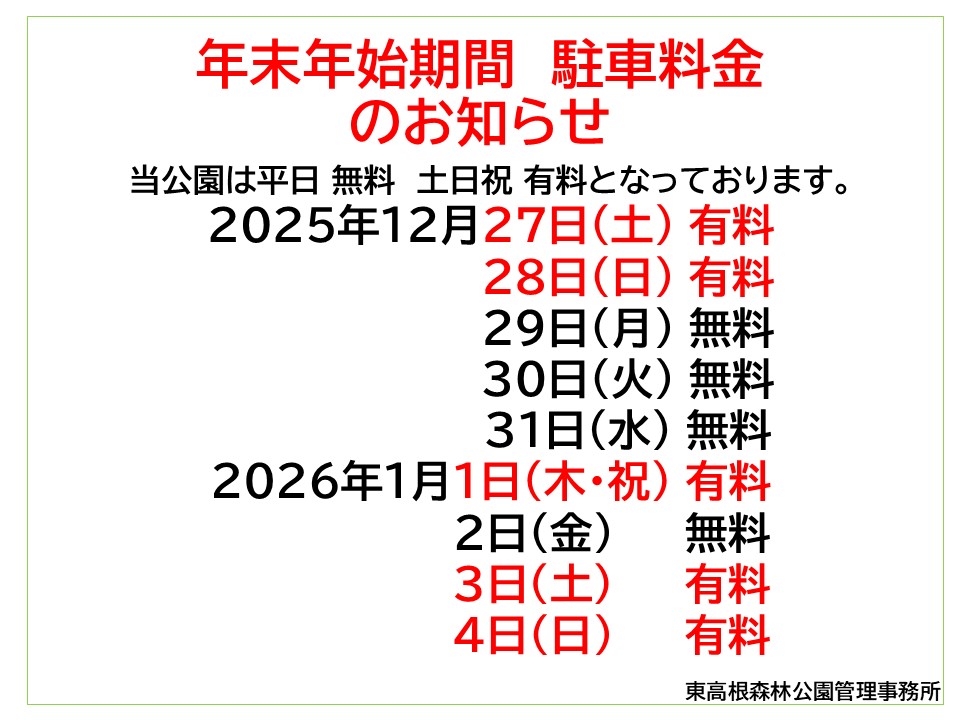 【お知らせ】年末年始期間 駐車料金のお知らせ