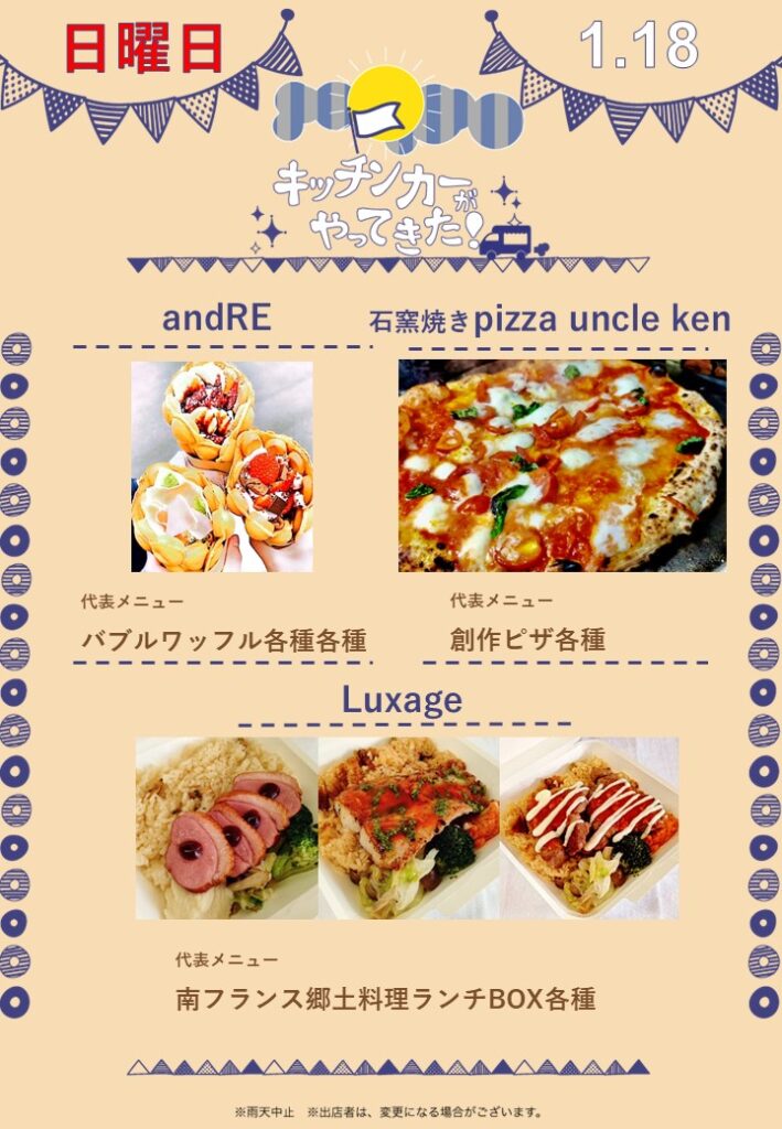 【お知らせ】1/18 キッチンカー